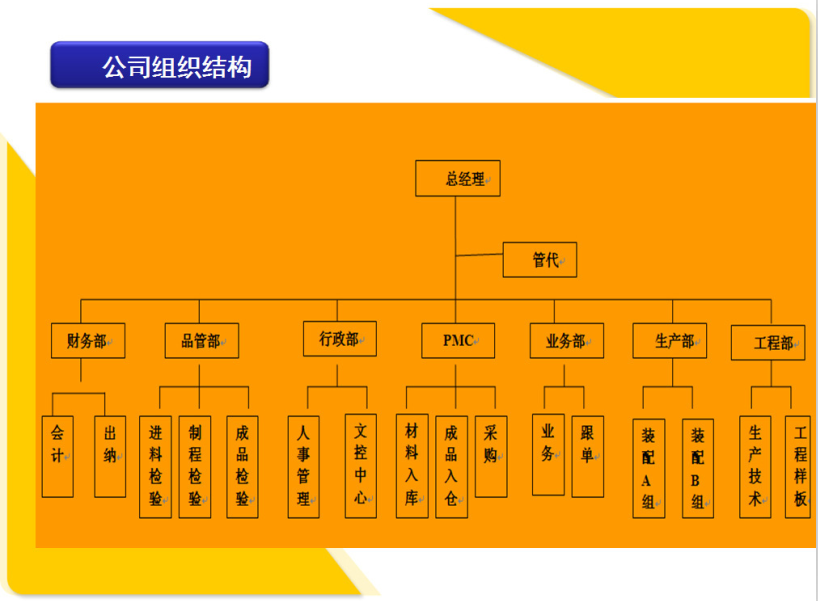 公司的架構完全依照現代企業組織結構和自身的生產經營情況整合而成,同時又充分發揮了各個合作企業獨自的強項,成為優勢互補,強強聯手的現代化大型科技企業,並貫徹ISO9001質量體係。公司的架構主要分為四個部分,實現了生產、研發、管理、銷售並舉的良好動作體係。
